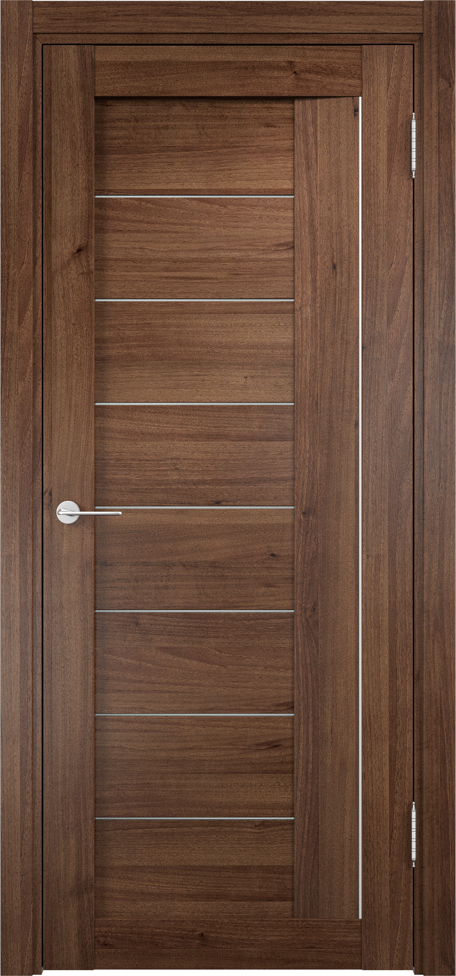 Дверное полотно выполнено из прочного МДФ. Поверх дверь покрывается экошпоном с реалистичной трехмерной структурой, которая повторяет древесные породы до мелочей.