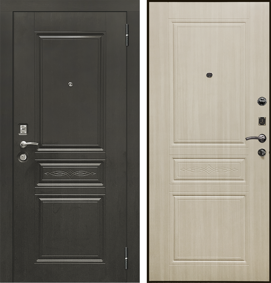 Внутренний материал МДФ, толщиной 6 мм. Дверной блок изготовлен из цельногнутой холоднокатной стали, с порошково-полимерным покрытием черный Шагрень с панелью 10 мм. покрытие ПВХ. Утепление двери происходит за счет наполнителя, а именно жесткого пенополистирола. Именно наличие данного наполнителя способствует высокому классу звукоизоляции и удерживанию тепла в помещении. Усиление двери добавляется благодаря ребрам жесткости.