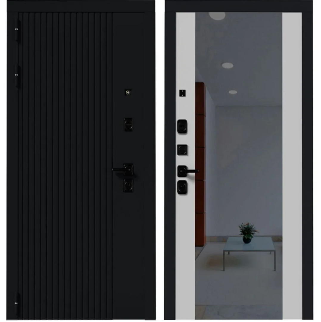 - Фурнитура: Ручка черная на квадратной планке раздельная стяжная; цилиндр ключ/вертушка, независимая ночная задвижка, глазок над замковой группой.