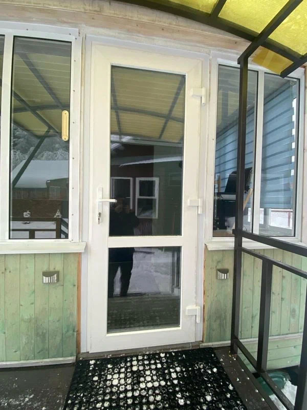 Дверь входная ПВХ с нажимным гарнитуром и усиленными петлями